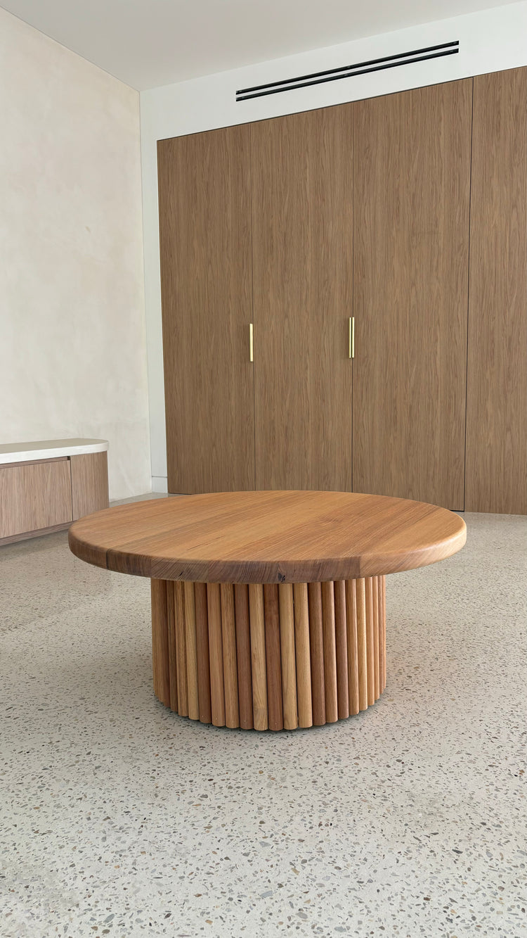 Bring the warmth and character of modern Australian design into your home with this beautifully handcrafted coffee table, made from solid Tasmanian Oak. Featuring our signature fluted detailing and a timeless round shape, it’s designed to complement a wide range of living spaces and pairs effortlessly with our Tasmanian Oak dining tables.