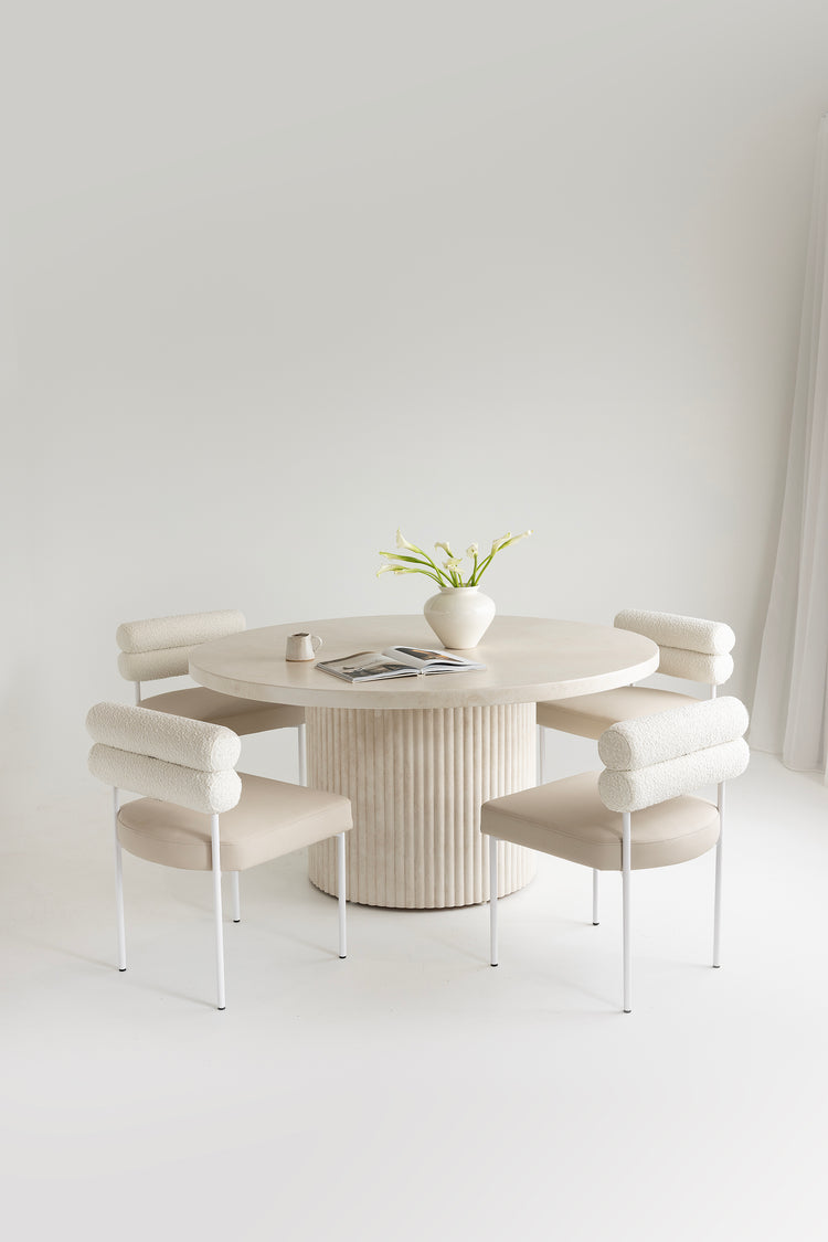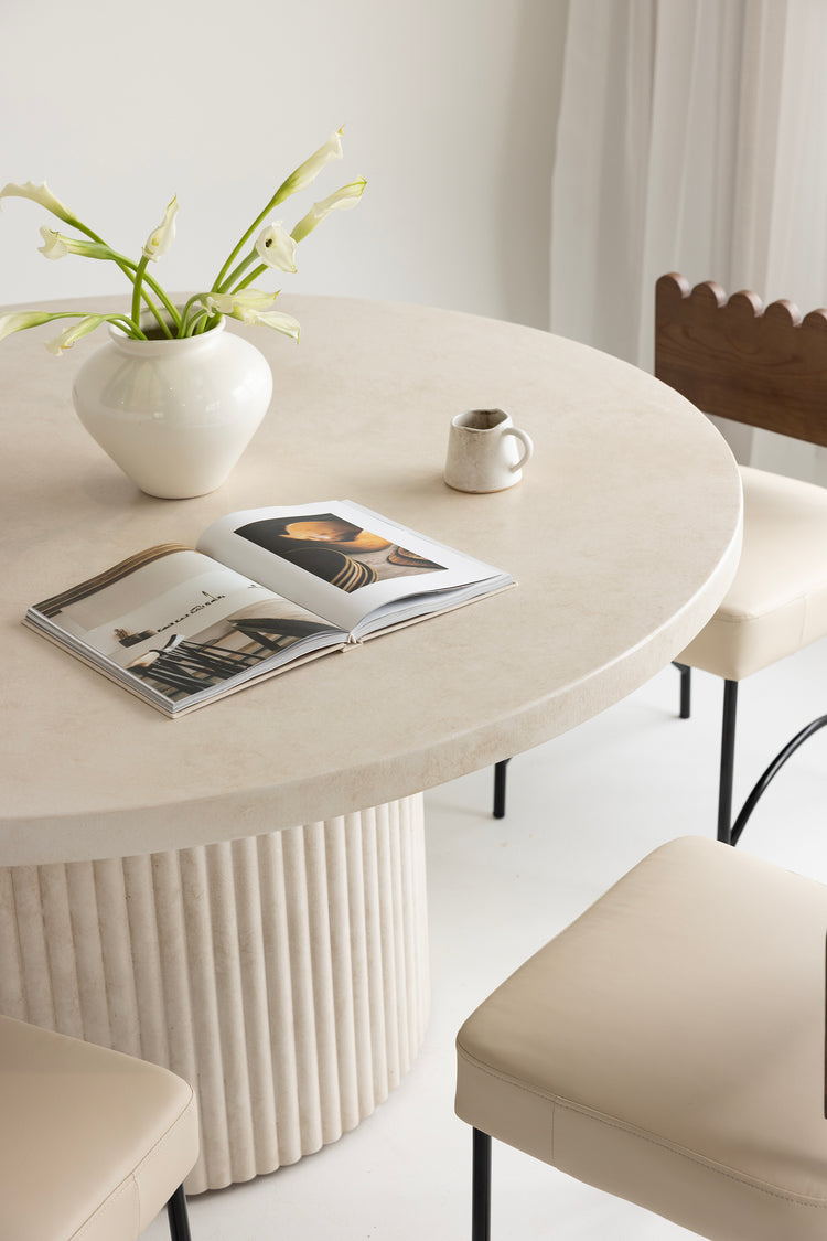 Bold yet refined, the Albany Dining Table is defined by its signature fluted pedestal base a sculptural detail that makes a striking statement in any space. Designed with entertaining in mind, its generous round form encourages connection and conversation.